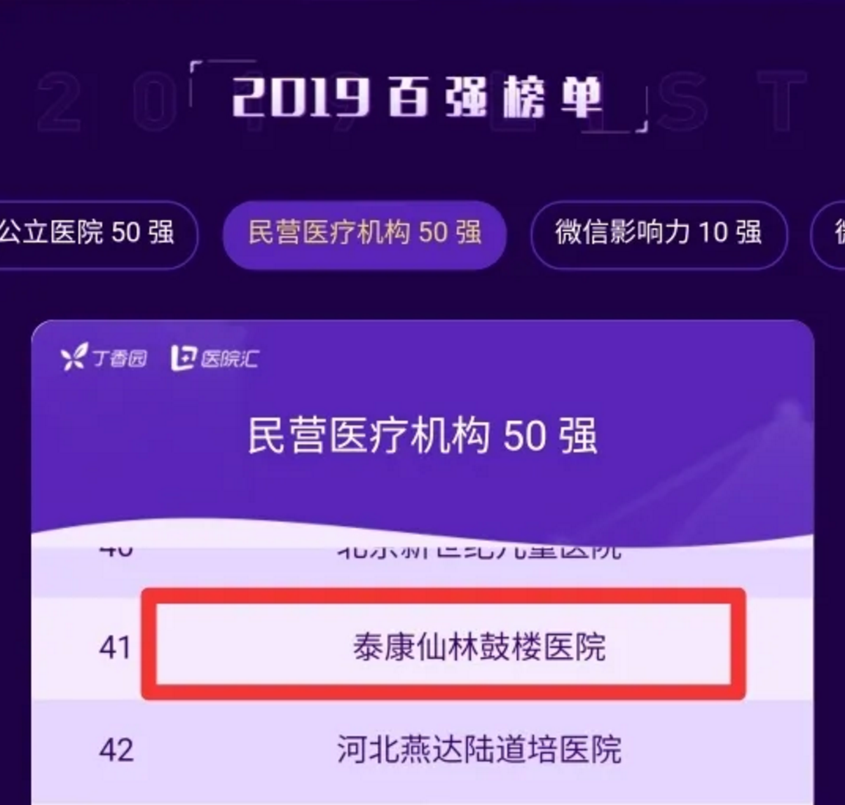 Ezpay仙林鼓楼医院连读第二年入围中国民营医疗组织50强。